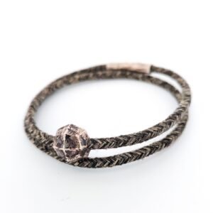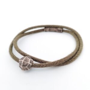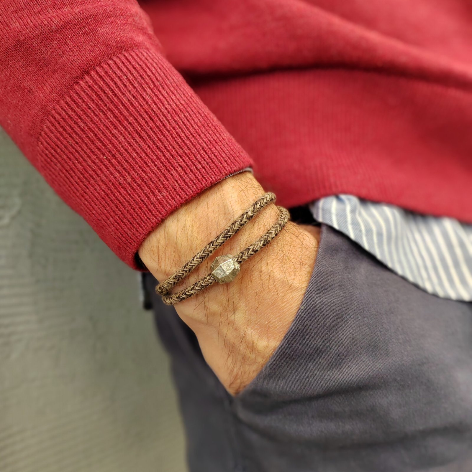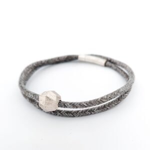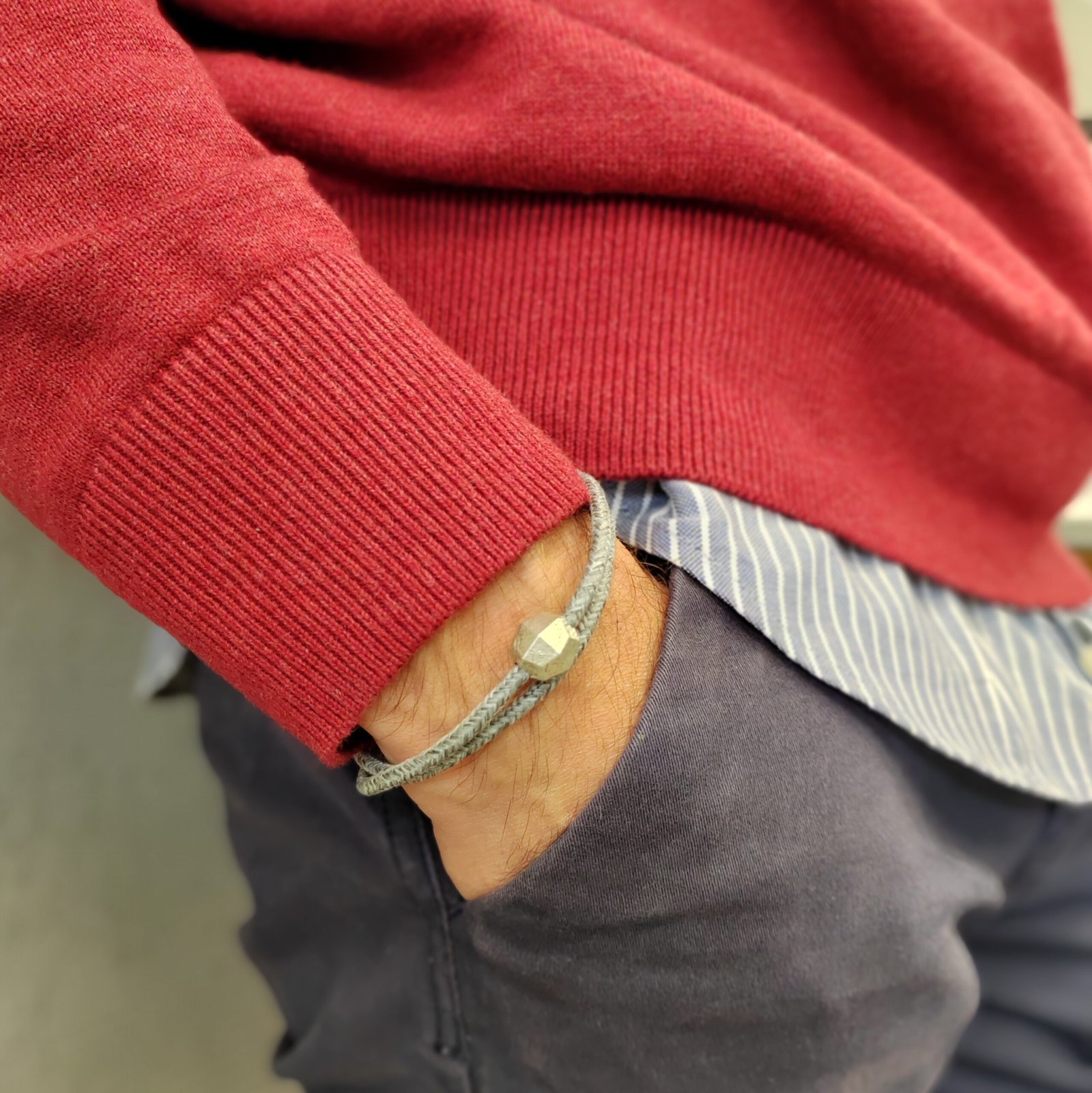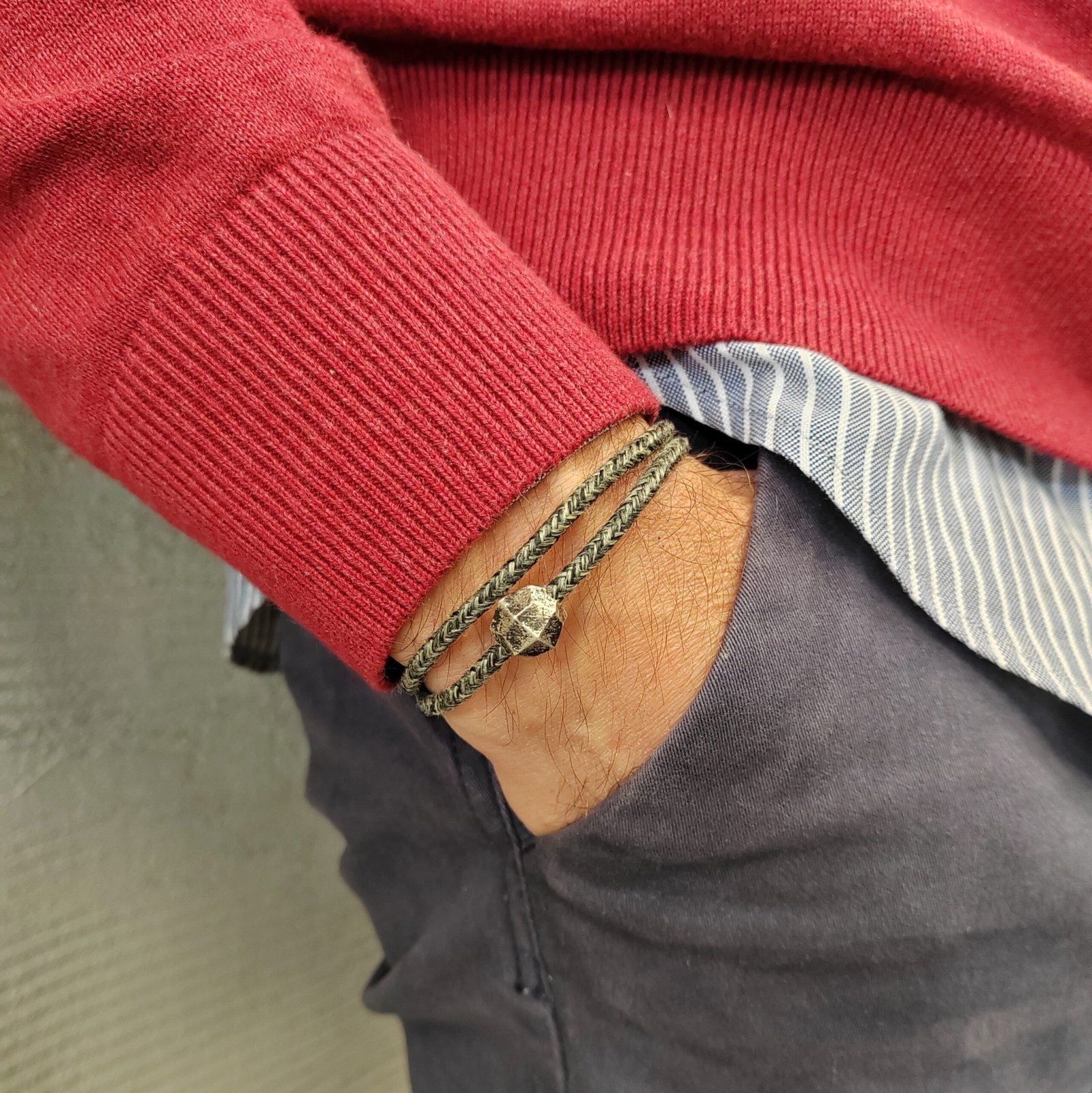 Aνδρικό ασημένιο βραχιόλι με κορδόνι και ασημένιο κούμπωμα.
