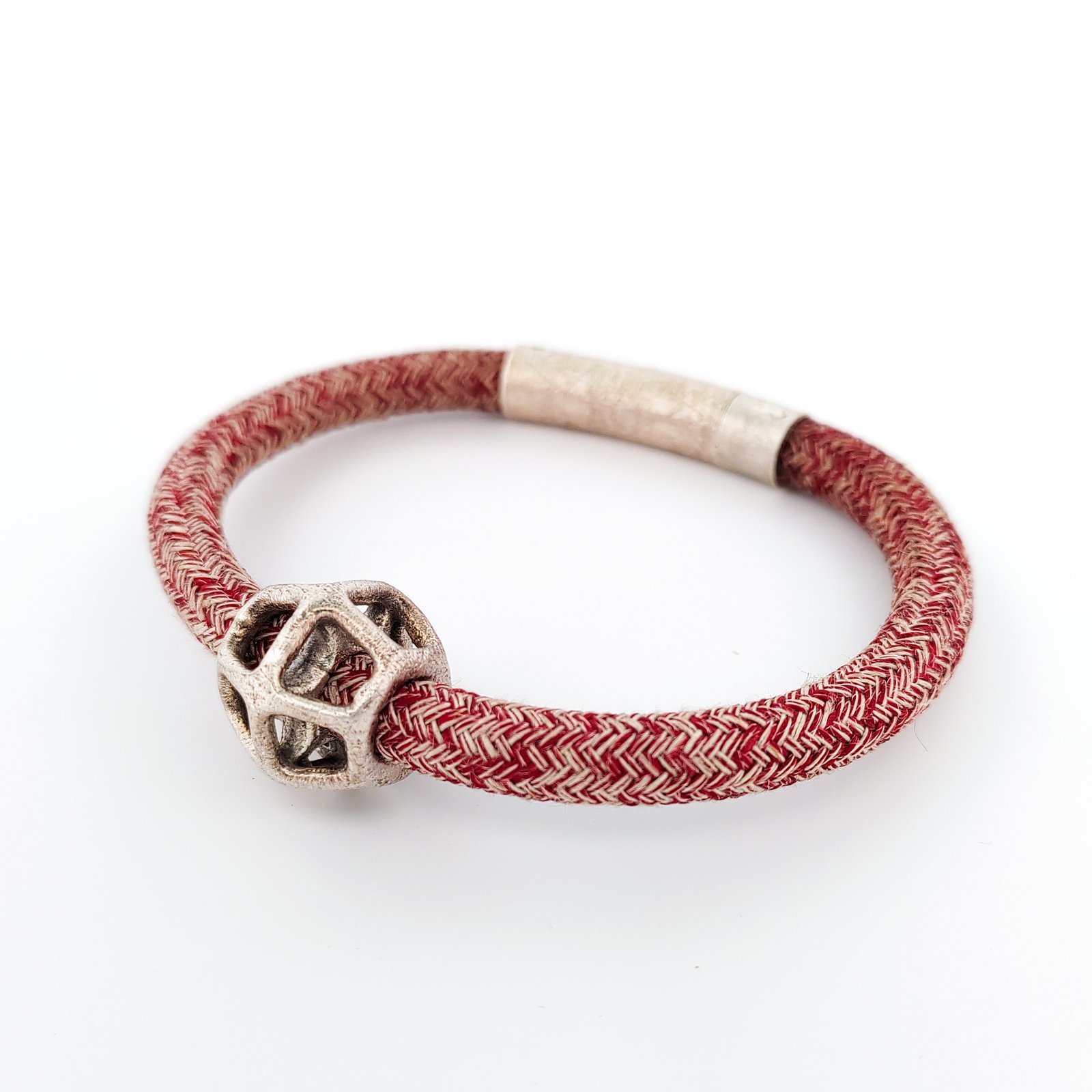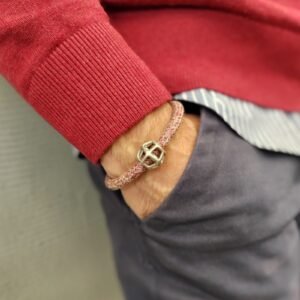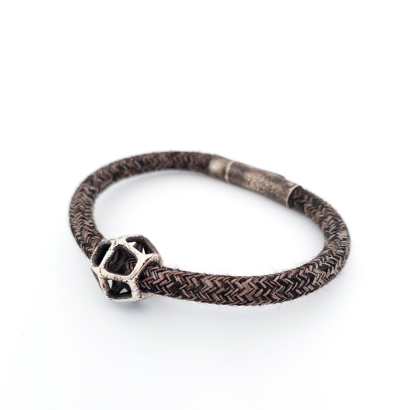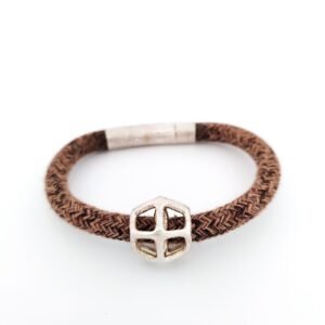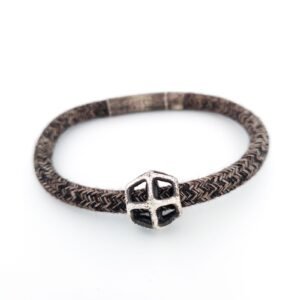 Aνδρικό ασημένιο βραχιόλι με κορδόνι και ασημένιο κούμπωμα.
