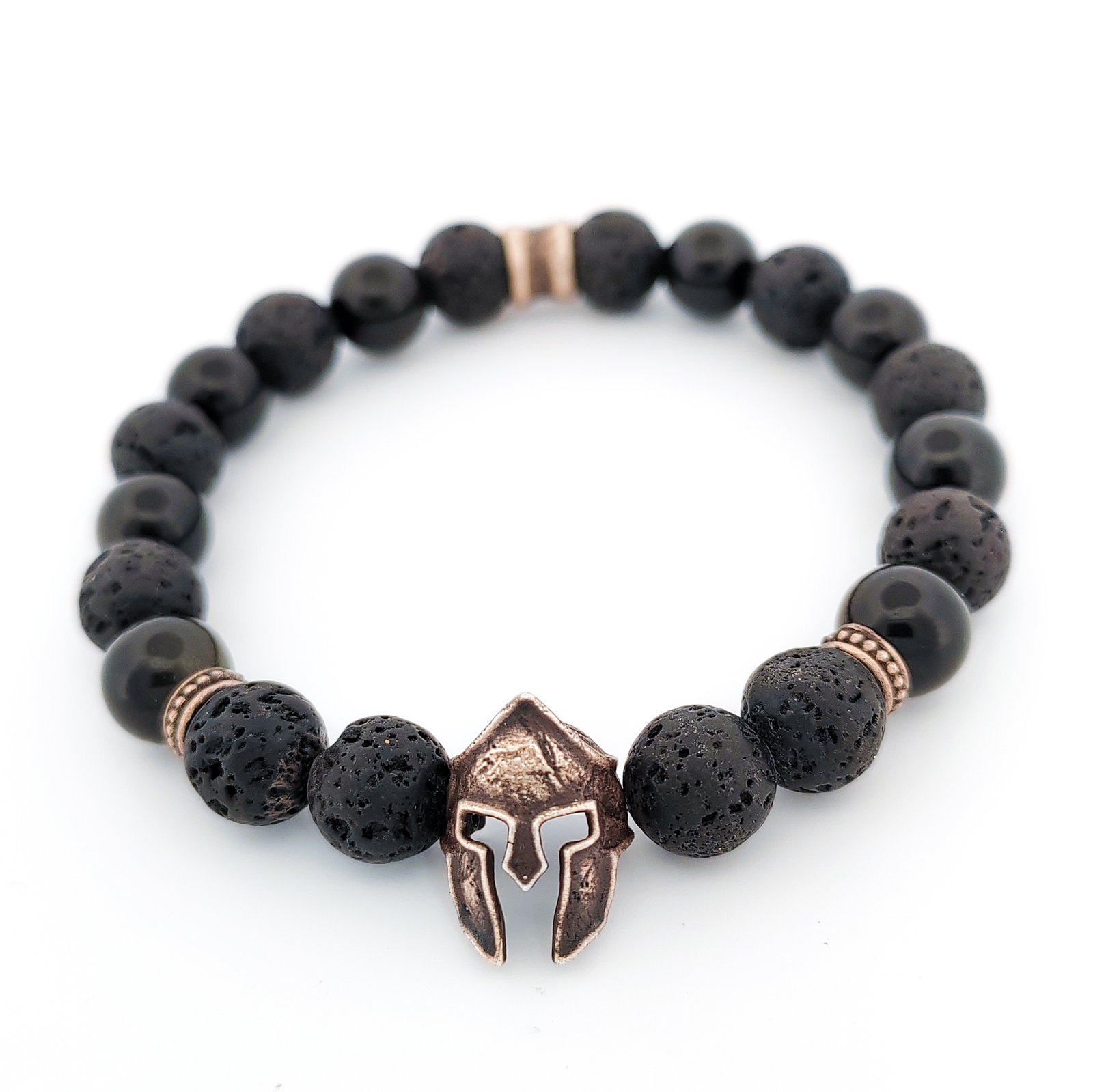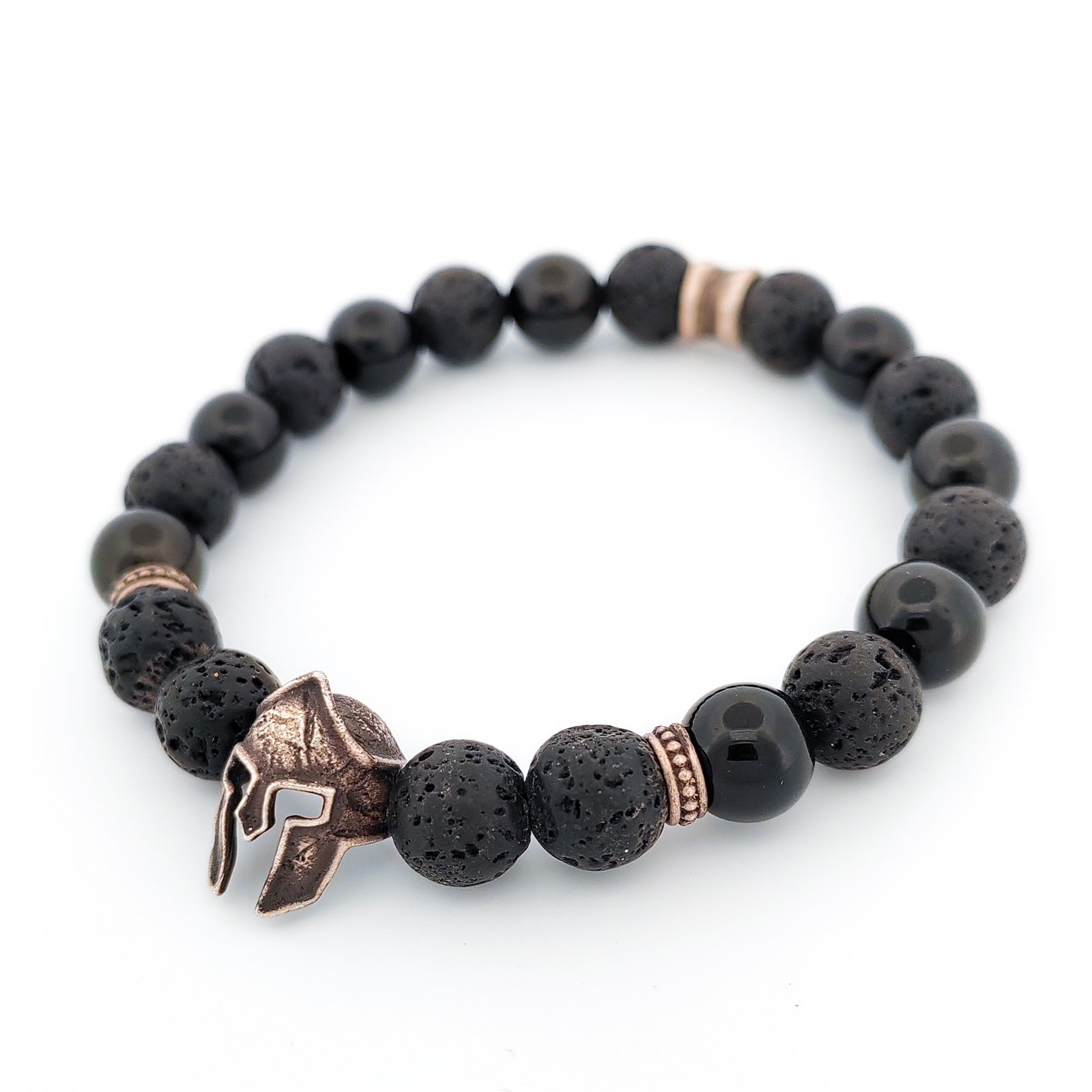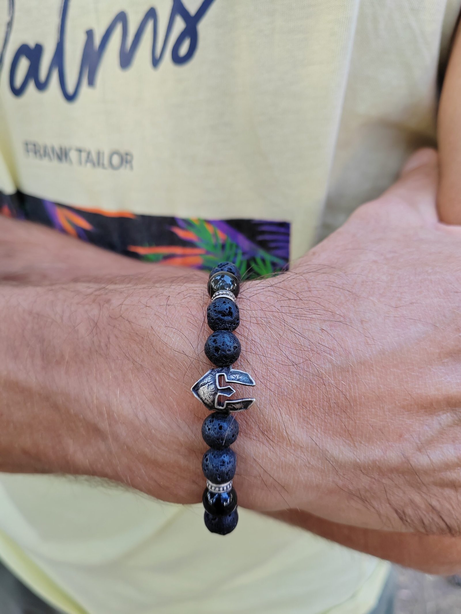 Aνδρικό ασημένιο βραχιόλι με λάβα και όνυχα.