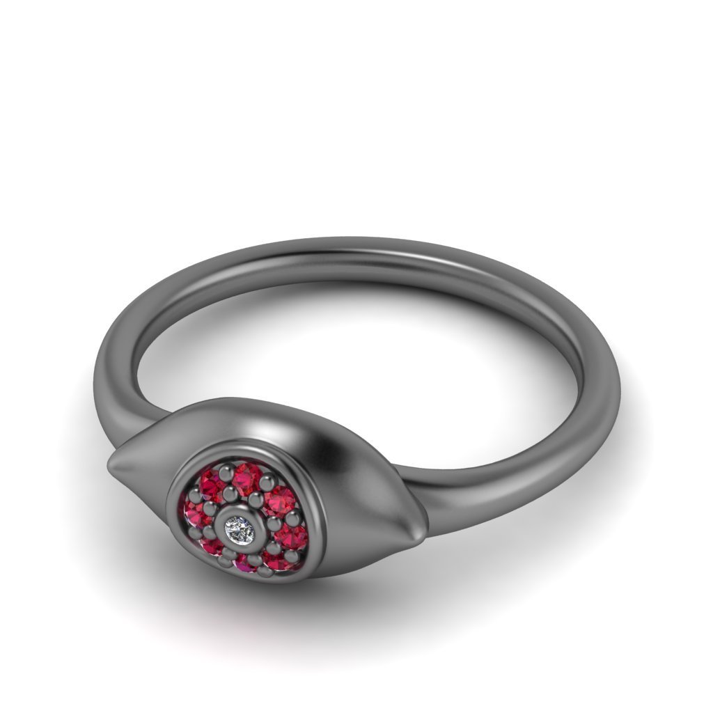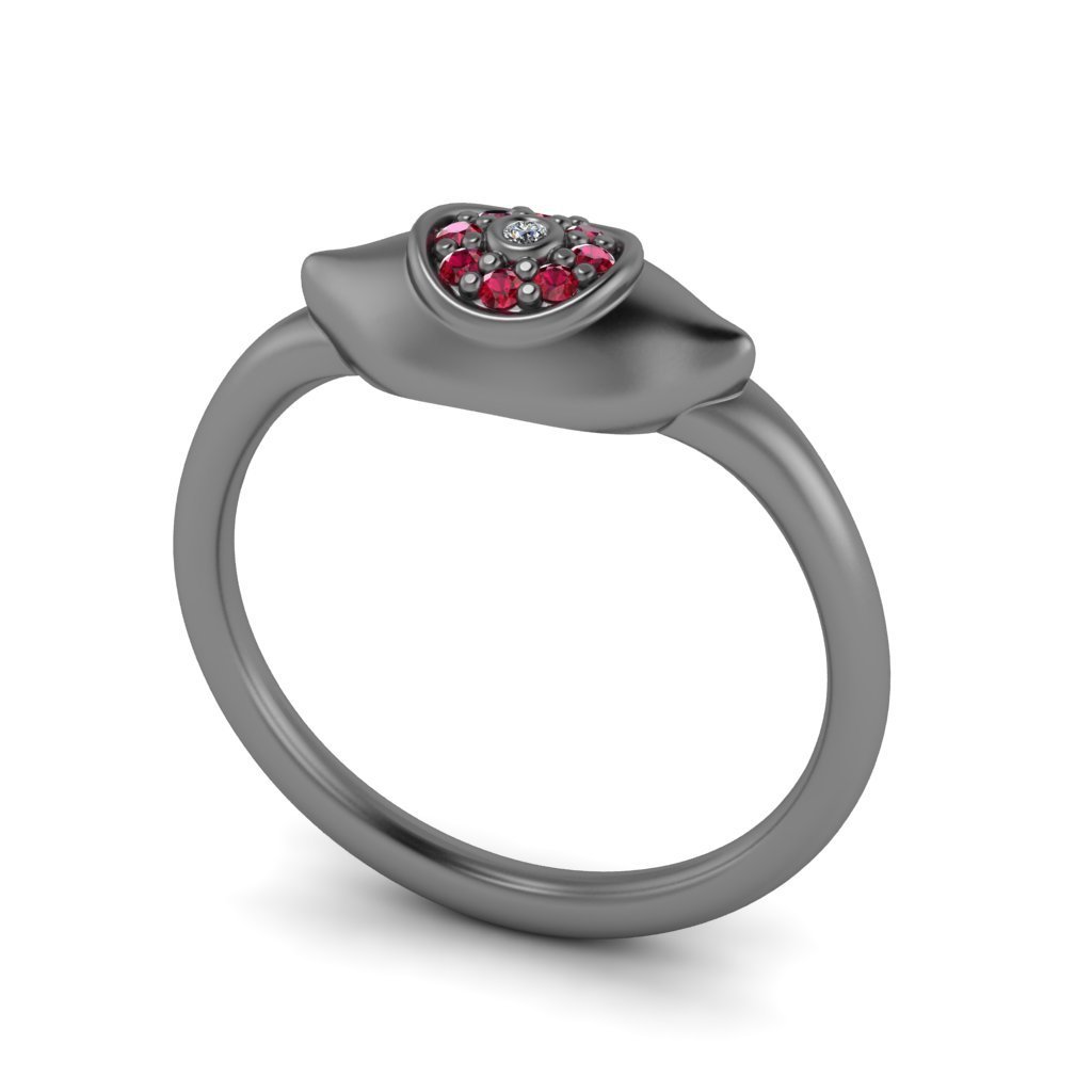 Ασημένιο δαχτυλίδι σε σατινέ φινίρισμα με ζιργκόν, διατίθεται σε ασήμι με μαύρη επιροδίωση και κόκκινα ζιργκόν.