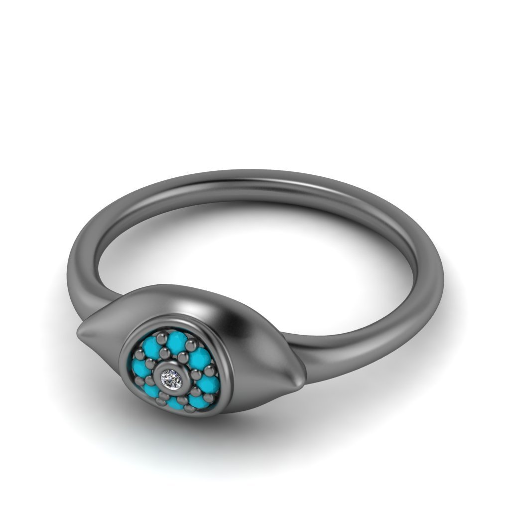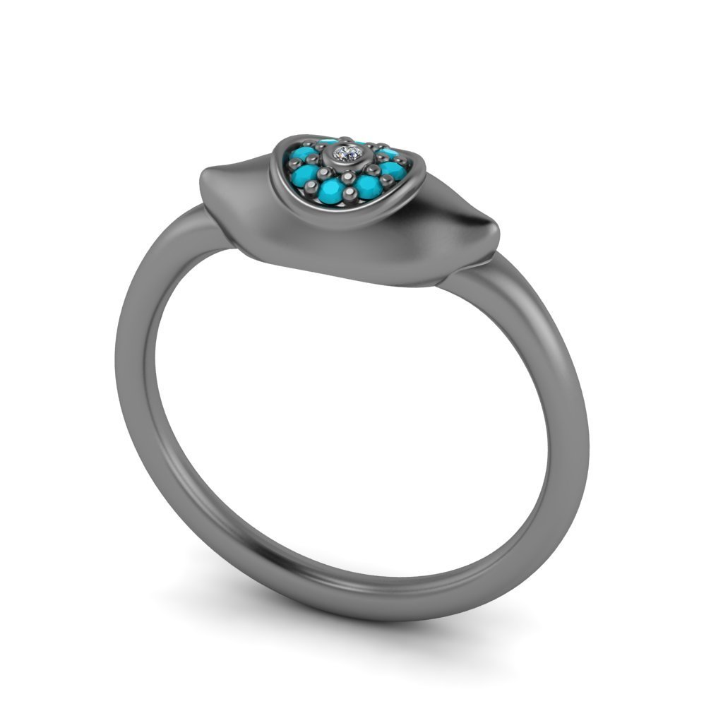 Ασημένιο δαχτυλίδι σε σατινέ φινίρισμα με ζιργκόν, διατίθεται σε ασήμι με μαύρη επιροδίωση και τυρκουάζ ζιργκόν.