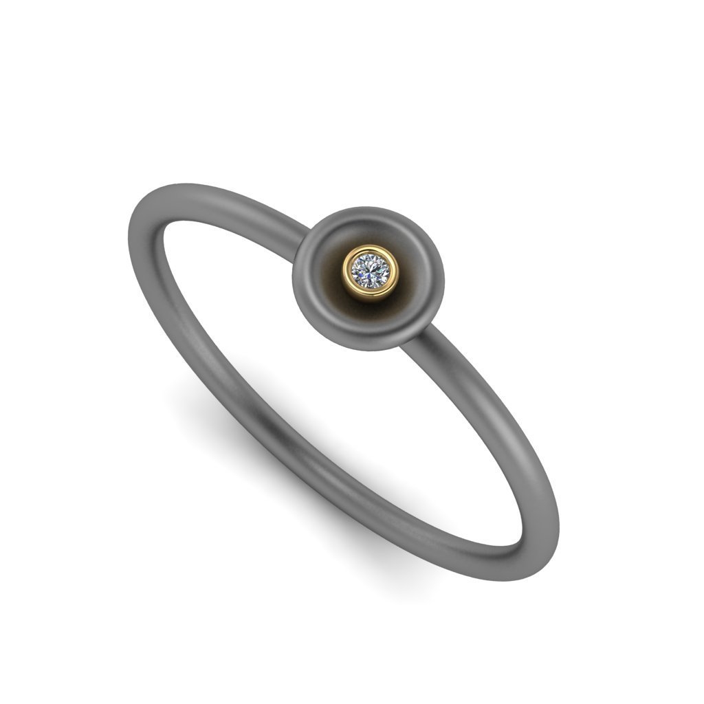 Ασημένιο δαχτυλίδι σε σατινέ φινίρισμα με ζιργκόν και χρυσές λεπτομέρειες