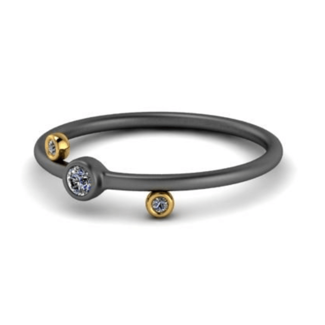 Ασημένιο δαχτυλίδι σε σατινέ φινίρισμα με ζιργκόν και χρυσές λεπτομέρειες