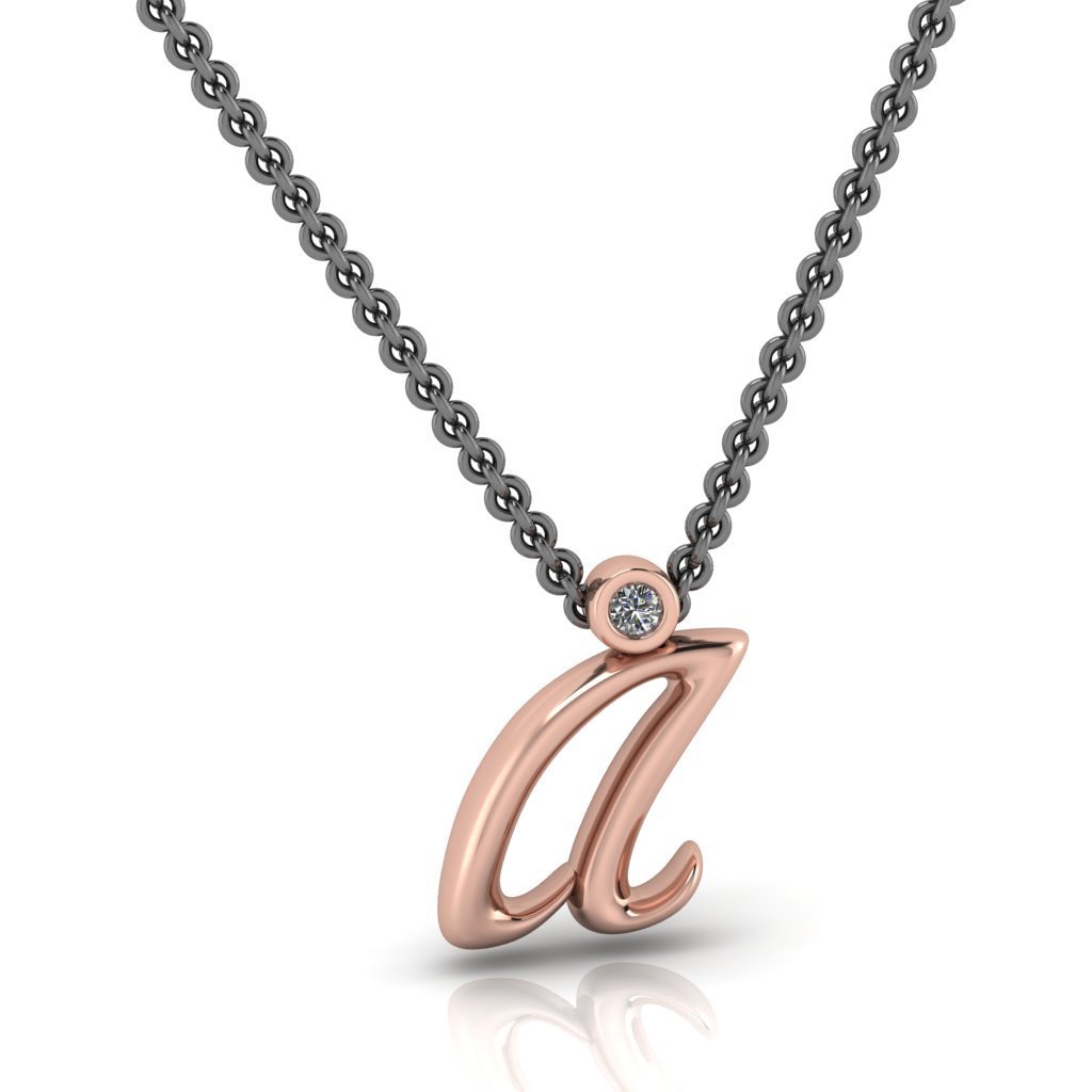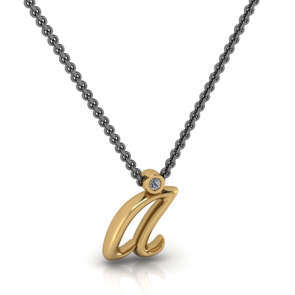 Όλα τα γράμματα του αλφάβητου με το ύφος του Ag Square. Mενταγιόν σε χρυσό 14Κ με ένα lab grown διαμάντι κοπής brilliant. Ασημένια αλυσίδα με μαύρη επιροδίωση. Διατίθεται σε κίτρινο ή ροζ χρυσό .