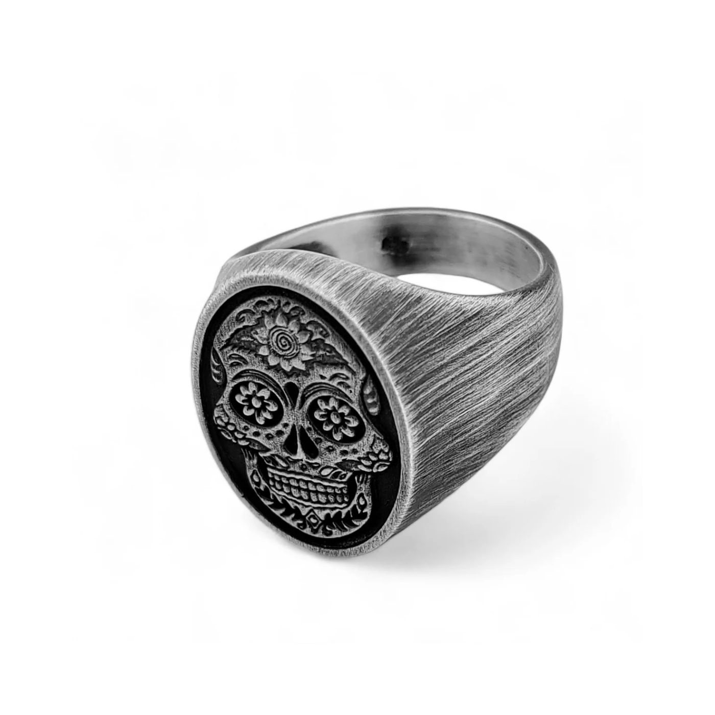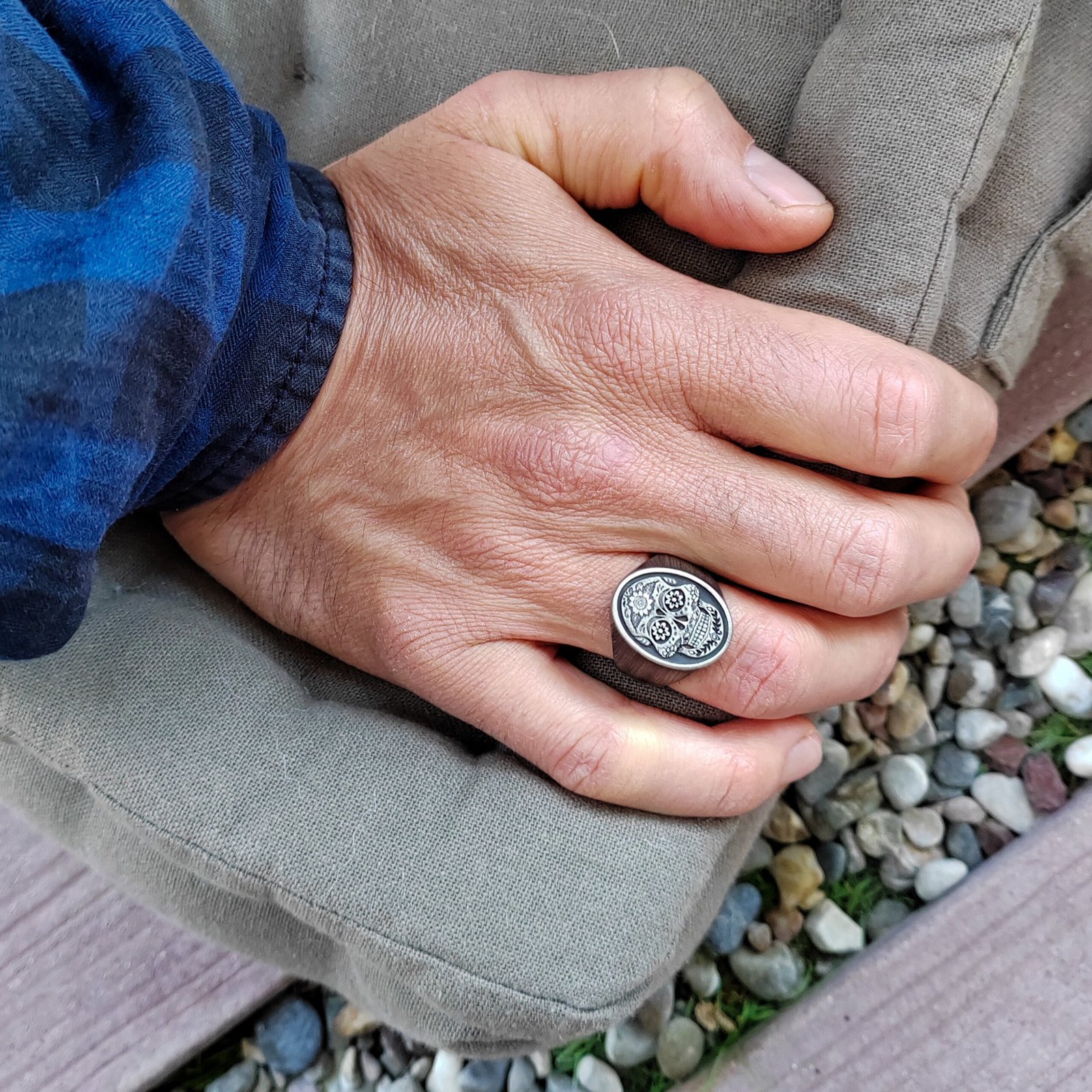Χειροποίητο ασημένιο οξειδωμένο δαχτυλίδι με νεκροκεφαλή, μια επιλογή για τον άνδρα από την συλλογή μας.
