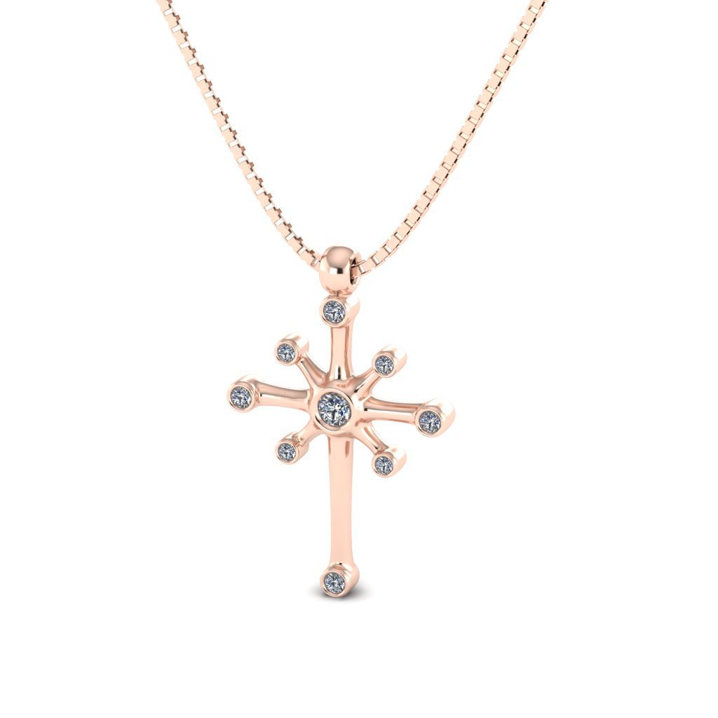 Χειροποίητο κομψό ροζ χρυσό μενταγιόν 14 καρατίων περασμένο σε ροζ χρυσή αλυσίδα με lab grown διαμάντια.