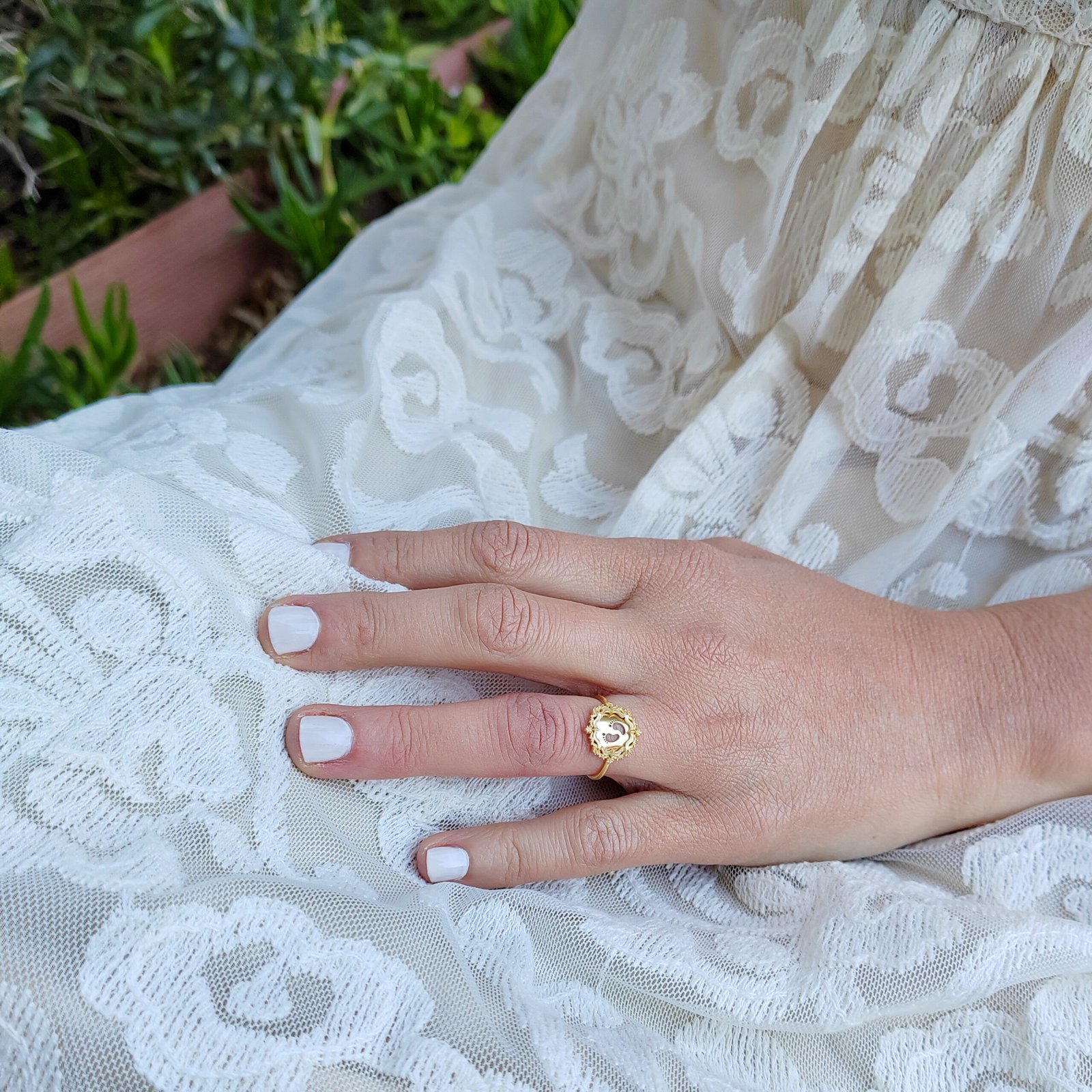 Χρυσό δαχτυλίδι πατημασιές “Heritage frame”