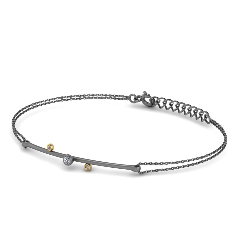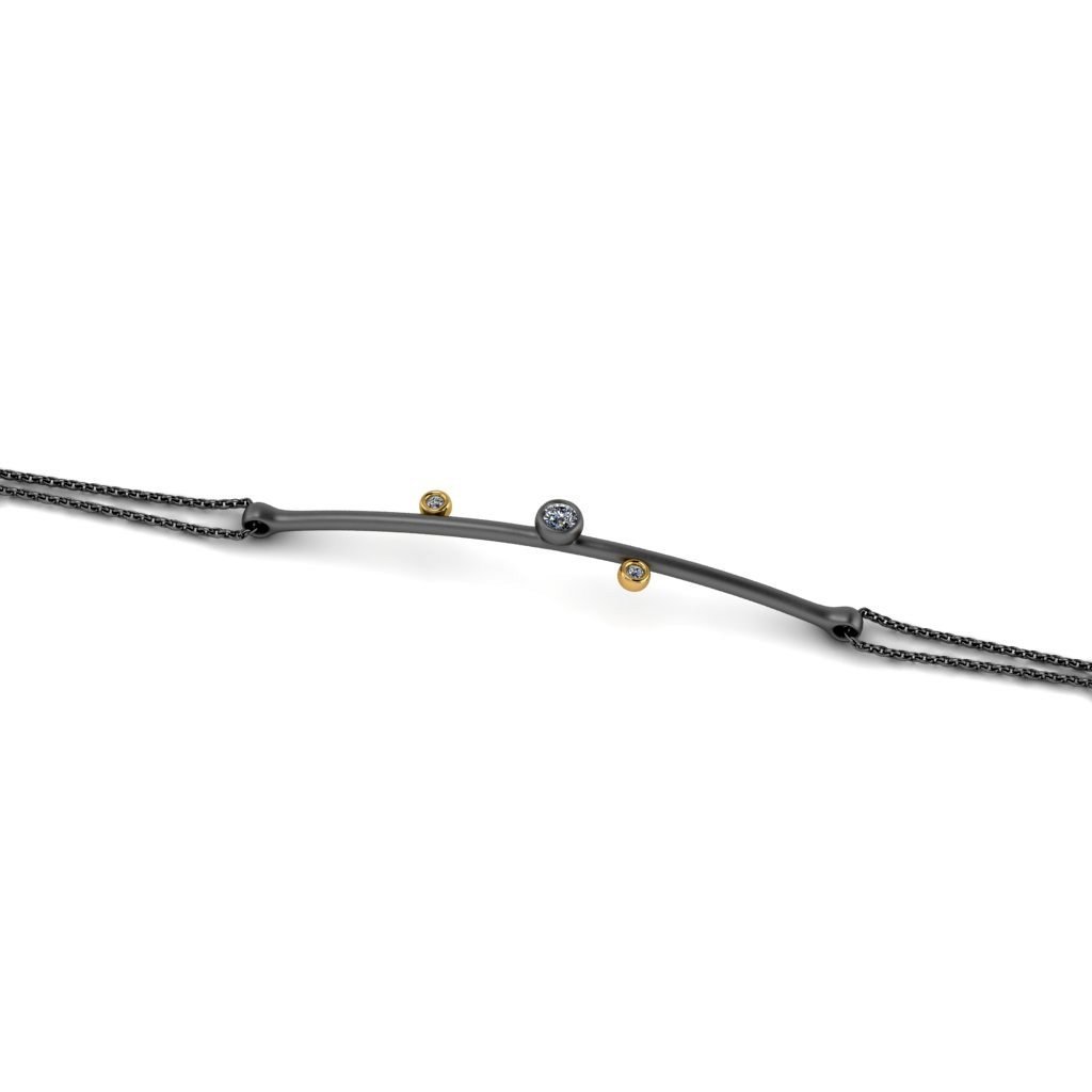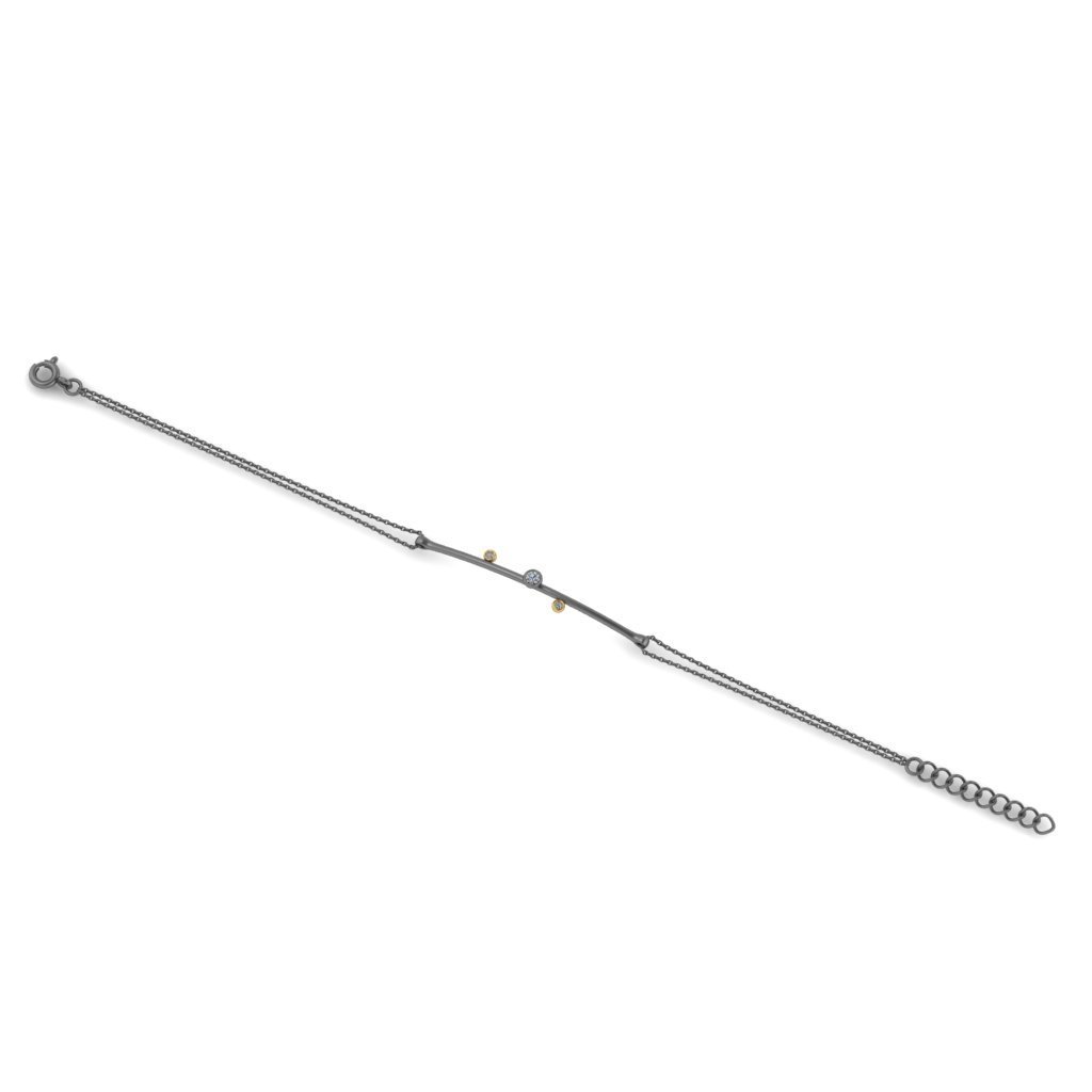 Ασημένιο βραχιόλι σε σατινέ φινίρισμα με ζιργκόν και χρυσές λεπτομέρειες.