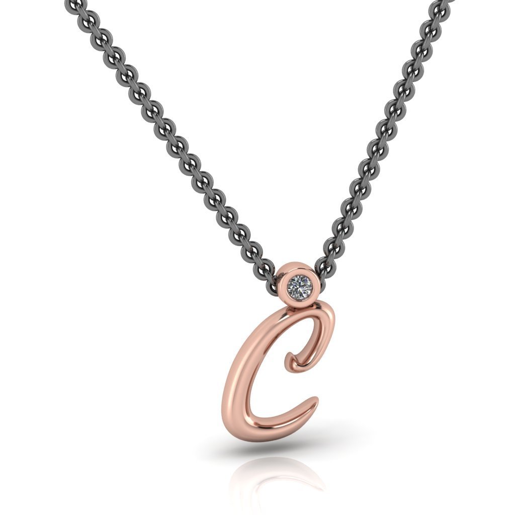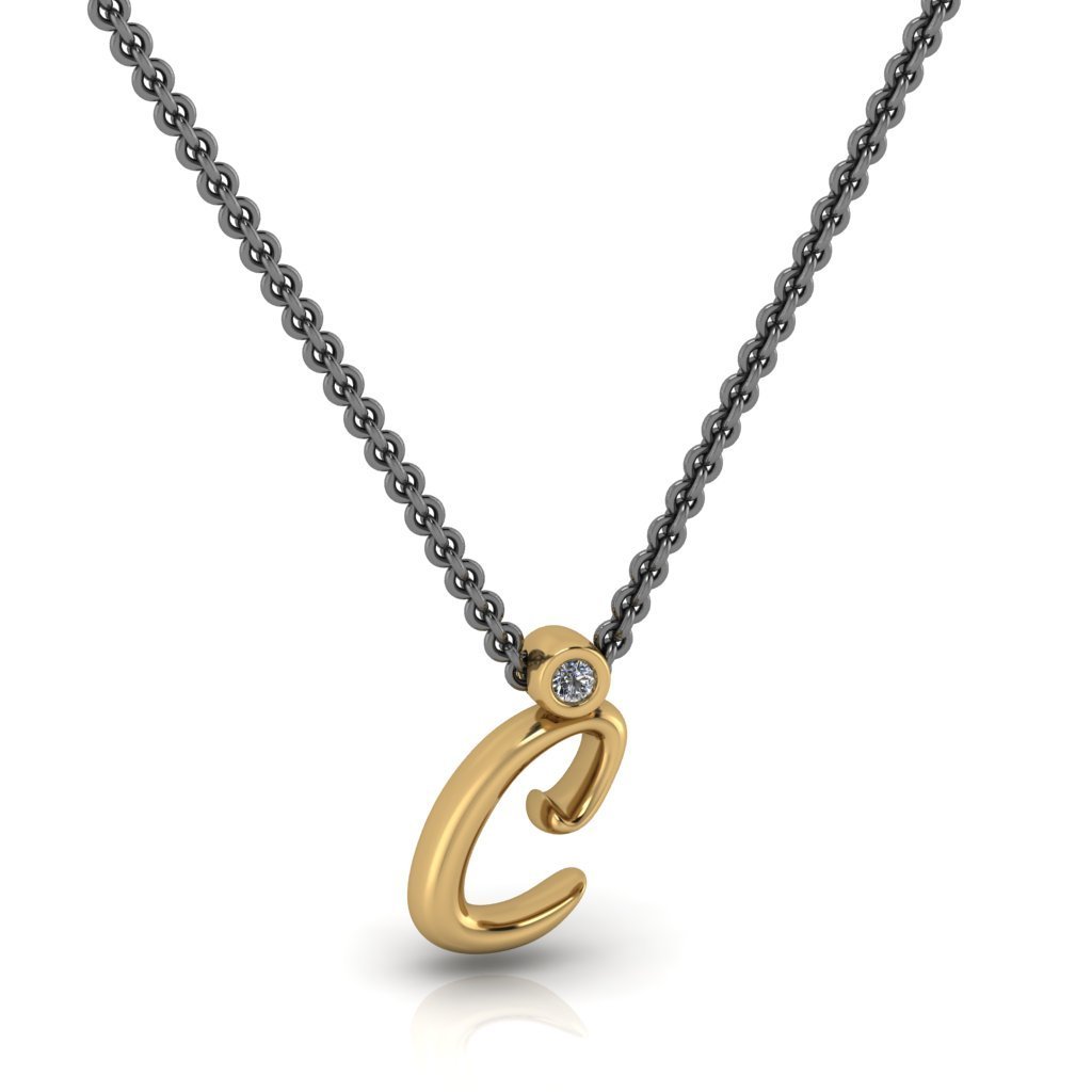 C μονόγραμμα χρυσό μενταγιόν με lab grown διαμάντι